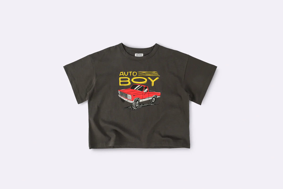 Introducing the Auto Boy Tee - made for little car lovers. Crafted from 100% certified organic cotton in a durable washed-black jersey, it's breathable, soft and built to last. Designed in our signature boxy, oversized fit, it features bold, playful custom BBOBBIE artwork front and centre. We don't do graphics often - but when we do, it's because they're too good not to wear.