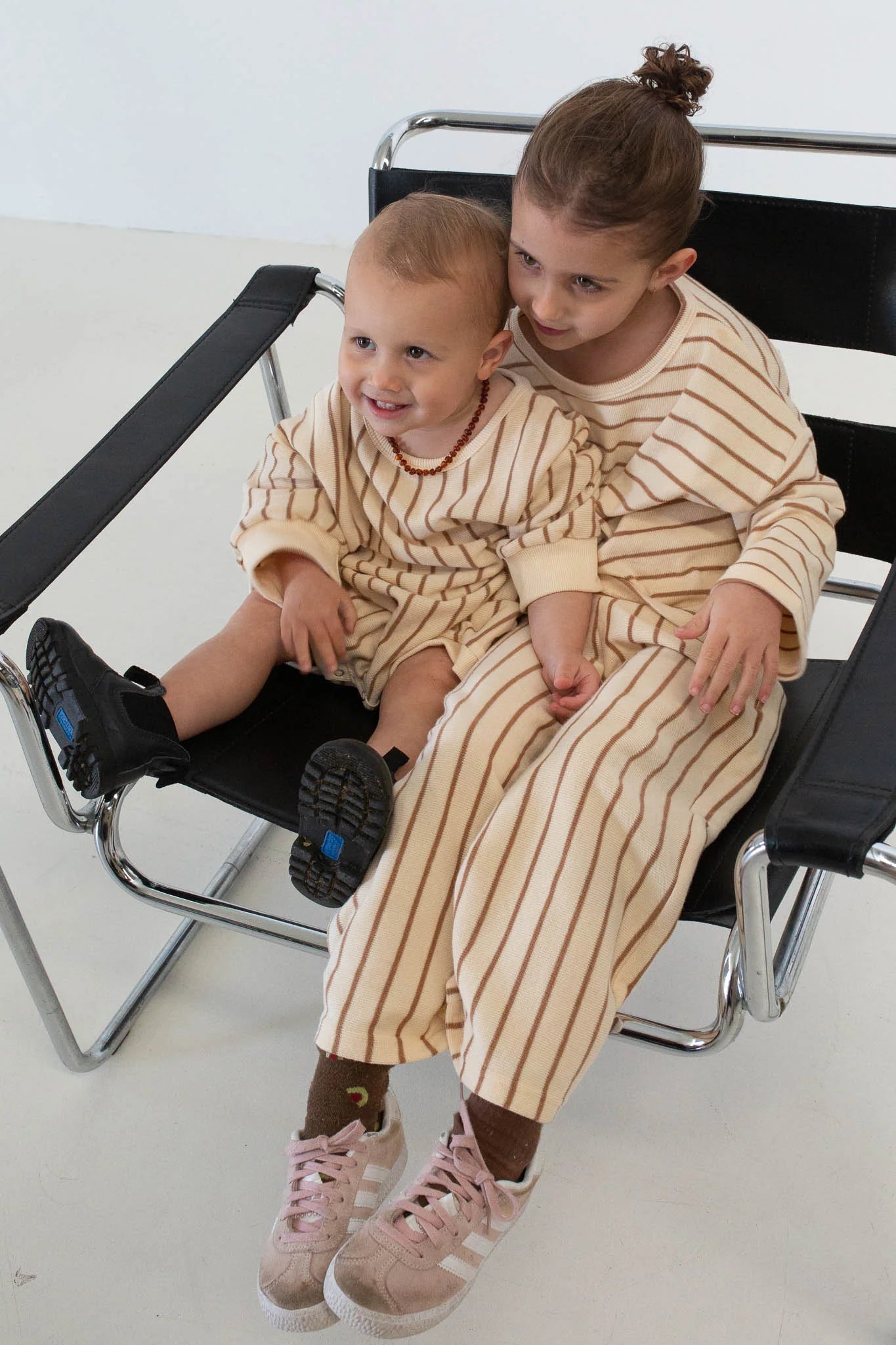 Addie Cotton Stripe Romper - Cream/Latte Stripe