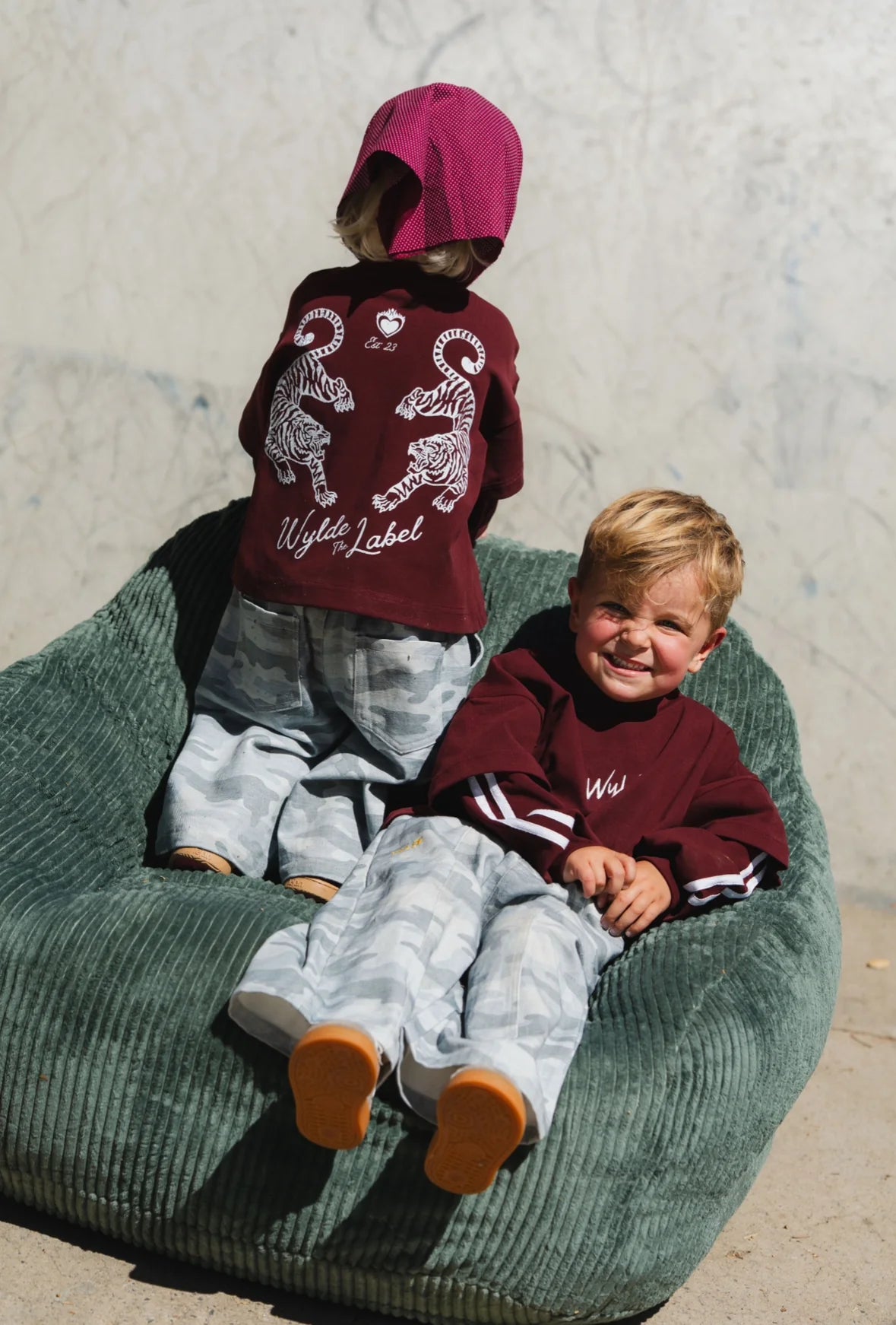 Our Riot Jeans feature a soft neutral camo print designed to elevate your mini’s everyday wardrobe with effortless street style. Crafted with our signature oversized fit and durable premium denim, they’re built for comfort, movement, and endless outfit combinations.