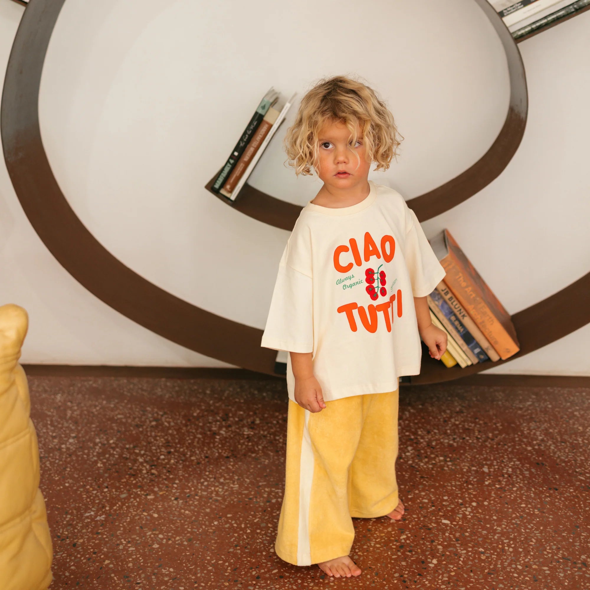 Shown here with the Ciao Tutti and Sun Island tee on Remy and the Bon Voyage tee on Junee
