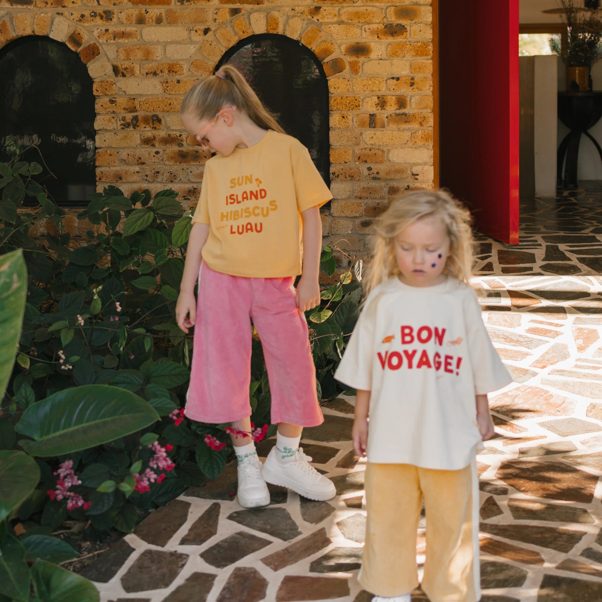 Shown here with the Bon Voyage relaxed pants on Remy, and the Swan wide leg pants on Coco