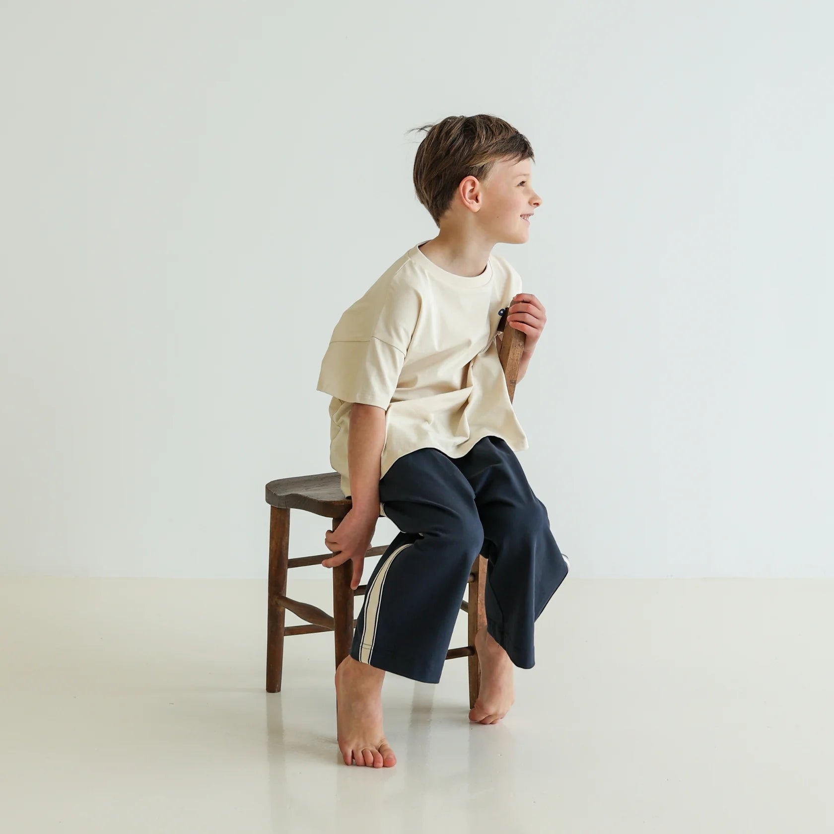 Obsessed. Our coolest pant yet—crafted in super-soft heavy weight Jersey with a bold contrast side panel. Featuring a drawstring waist, side entry pockets, and an ultra-relaxed leg. Designed to be worn cropped, the length looks great at any height. Buy true to age, or check waist measurements for the perfect fit. Room to move, room to play—always fresh.