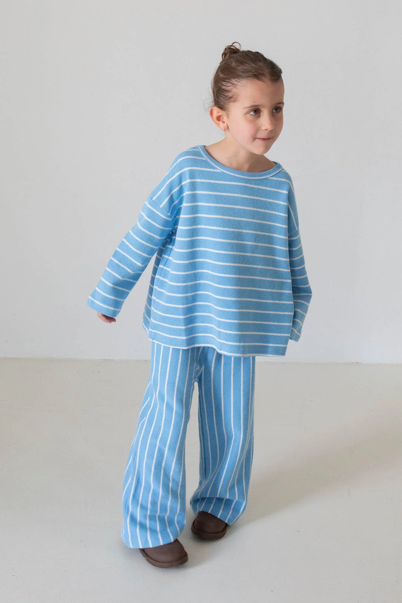 Alma Cotton Stripe Long Sleeve Set - Blue/White Stripe