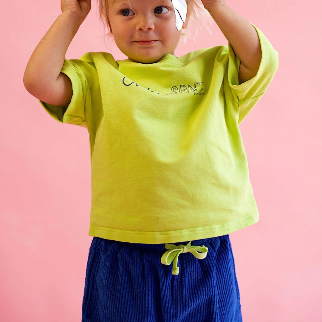Turn heads in neon, the Outta Space Neon Green Kids T-Shirt brings a burst of cosmic energy to everyday play. Part of our Golden Child Outta Space collection, this oversized unisex tee is designed to grow with your little one and light up their wardrobe. Made from a premium terry cotton and elastane blend, it delivers breathable comfort with stretch and durability that keeps up with every move. Featuring a bold Outta SPACE logo on the front and our signature solar system print on the back, this tee makes a statement from every angle. Designed in Australia with a relaxed fit and short sleeves, it’s the ultimate neon kids t-shirt for curious minds aged 1–8 years. Features - 100% Cotton: For ultimate comfort and breathability. - Short Sleeves: Provides sun protection for outdoor play. - Screen Printed: Durable prints that maintain colour and detail. - Unisex Design: Suitable for all children within the 1-8 year age range. Care Wash me on a cold and gentle machine wash inside out on a short cycle. Do not bleach, tumble dry or dry clean me. Line dry me inside out in the shade or cool iron on reverse. My print will fade over time.