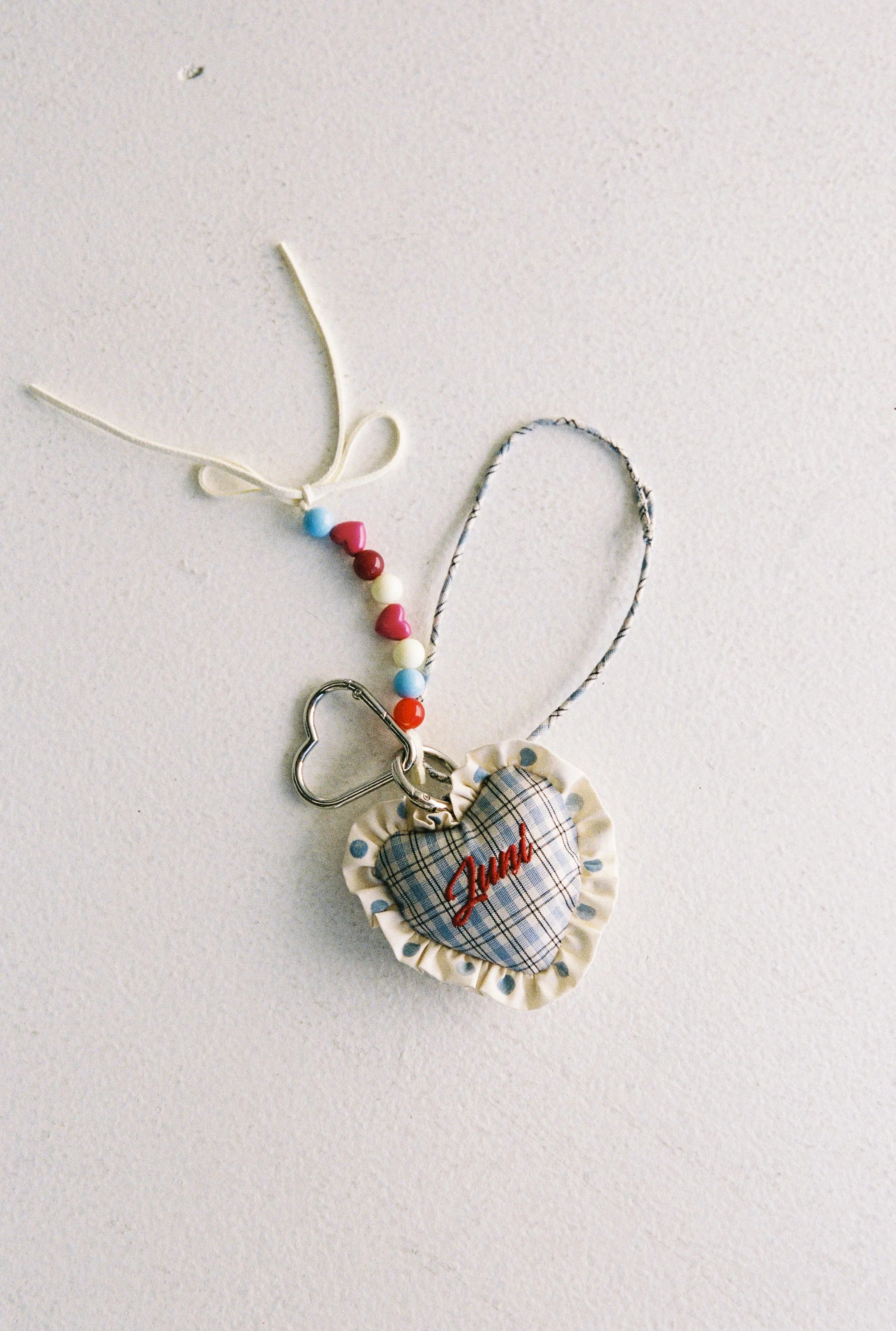 Heart Bag Charm - Blue Check
