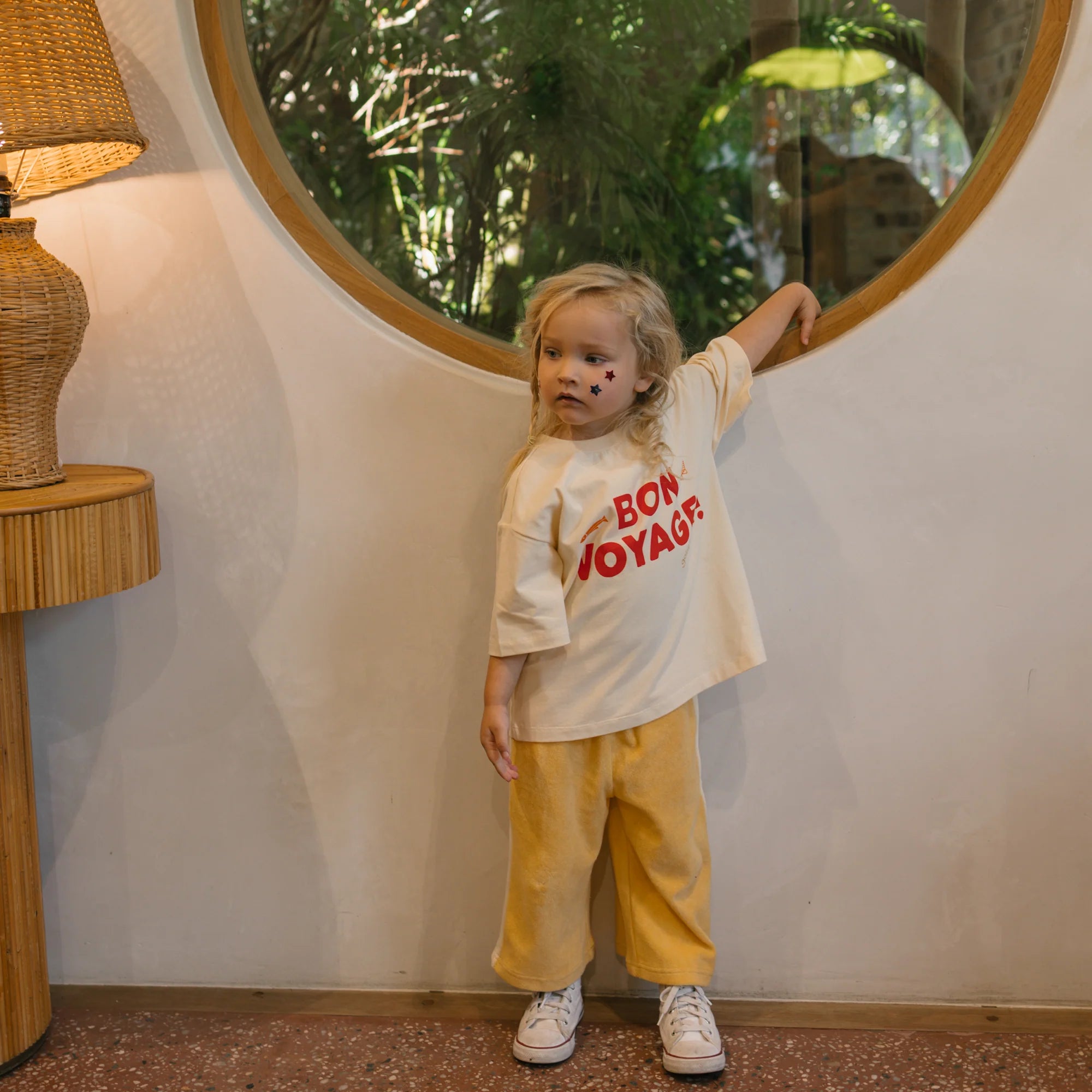 The Bon Voyage Tee is made from 95% cotton jersey, 5% spandex with an incredibly soft hand feel. The print is inspired by the feeling we get when we are heading off on a journey, somewhere magical to create memories together, Bon Voyage!