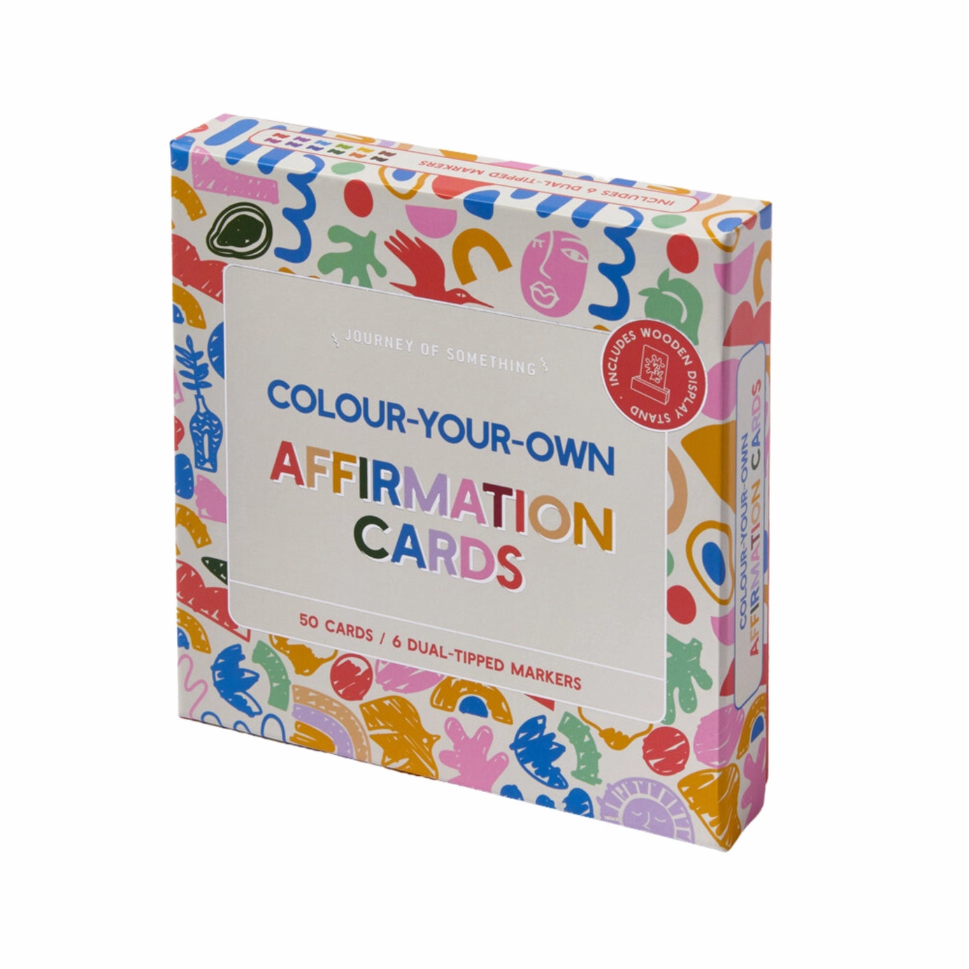 Add positivity, inspiration and motivation to your day! We like to help you to help yourself, so take 5 minutes out of every day and repeat the affirmation to yourself while you colour in the card. Display your card in the stand provided. Practising affirmations triggers your subconscious mind and activates your best self - being positive can both improve the way you interact with other people and help you to accomplish your goals. It's a simple practice that can make a big difference. Contents: 50 x Colour Your Own Affirmation Cards 1 x Wooden Display Stand 6 x Dual-Tipped Markers